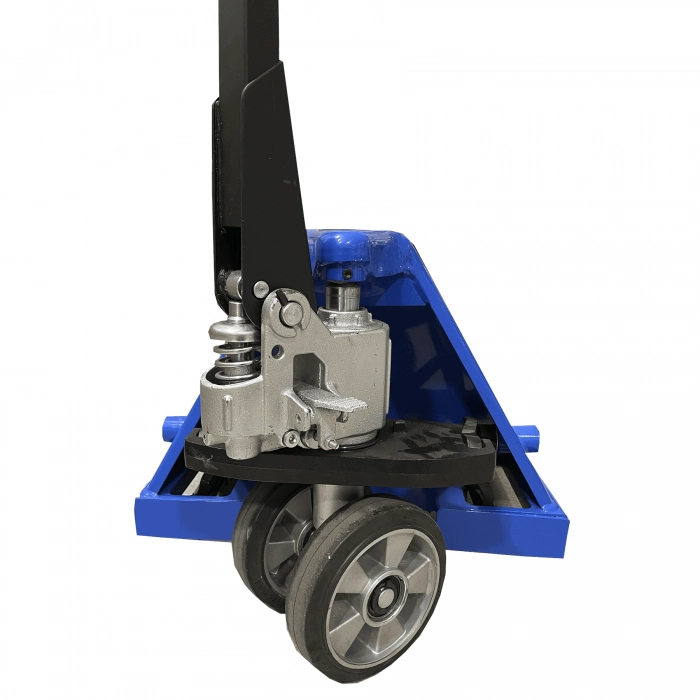 Гідравлічний візок Рокла ВПД2 Дніпровес призначений для транспортування вантажів та піддонів на складах та виробництвах. Особливістю моделі є вантажопідйомність до 3000 кг, збільшені колеса та посилений гідравлічний насос. Модель ВПД-2 відрізняється рамою, посиленою ребрами жорсткості. Розмір рульових коліс 180х50 мм