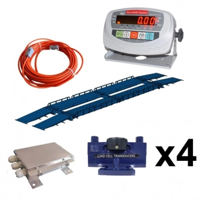Набір вагового обладнання для автомобільних ваг. Даний комплект складається з 4-10 тензодатчиків KELI QS-A 20/30t OAP, вагового індикатора AXIS-01, сполучної коробки JXHG (на 4-10 датчиків) і сполучного кабелю 30м. Це обладнання призначене для встановлення на автомобільні.