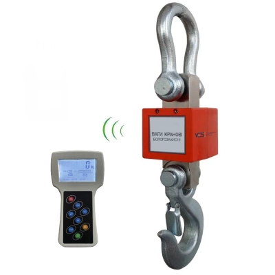 Кранові електронні підвісні ваги Дніпровес OCS-T-3T від 10 кг до 3000 кг точність 1 кг, з радіоканальним керуванням, металевим корпусом та підвищеним вологозахистом. Корпус терезів захищений за стандартом IP-67. Особливістю моделі підвісних ваг OCS-Т Дніпровес є компактні розміри та радіоканальний пульт, що дозволяє керувати вагами на відстані до 100 м. Інформація про зважування відображається на дисплеї пульта.