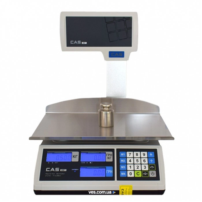 Торгові електронні ваги CAS ER JR CBU на 6/15/30 кг, серії Junior є однією з найкращих торгових ваг на ринку України. Наявність вбудованого акумулятора дозволяє працювати з вагами як у приміщеннях, так і в умовах виїзної торгівлі. Рідко-кристалічний індикатор з підсвічуванням синього кольору забезпечує хорошу видимість в умовах яскравого сонячного світла та у темний час доби.