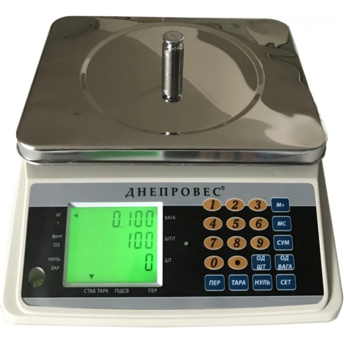Ваги рахункові Дніпровес ВТД-СЧ зручне управління розташоване на корпусі дає можливість вводити параметри товару, і при цьому відразу ж бачити результат на ЖК-дисплеї. Тепер непотрібно зважувати кожну деталь окремо по 1 шт., тому що в даному приладі встановлена функція підрахунку однотипних деталей, що полегшує завдання при використанні в госп магазинах для продажу болтів, металовиробів, гайок, шурупів і т.д. Вбудований акб дозволить встановлювати ваги у віддалених місцях від джерела 220в та працювати безперервно. Економний режим допоможе заощадити заряд акумулятора і збільшити його працездатність на тривалий час. Також у функціональному розпорядженні є функція бракування (можливість призначати поріг зважування з мінімальним та максимальним значенням). Цей товар придбав велику кількість позитивних відгуків від підприємців, що говорить про його якість та функціональність. Гарантія в 1 рік та наявність сертифікації та метрологічної перевірки роблять дану модель бажаною до покупки. У нас здійснюються прямі поставки від виробника.