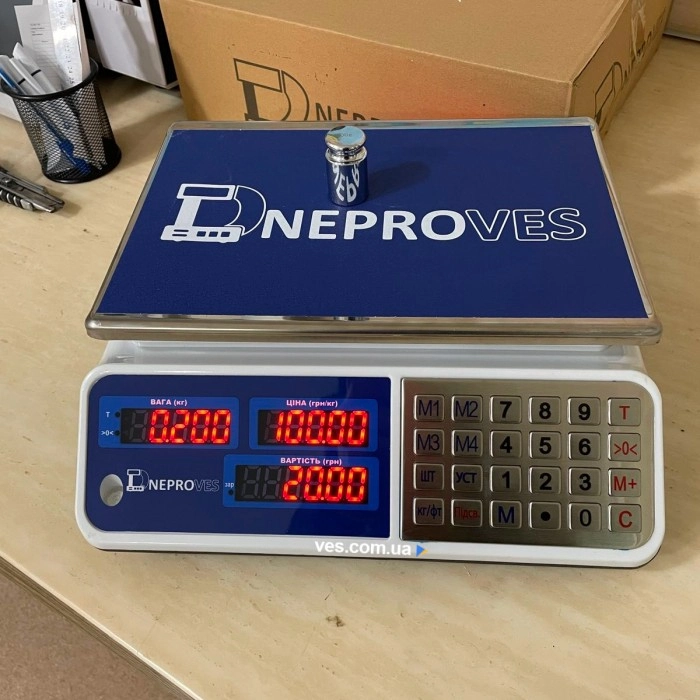 Ваги торгові Дніпровес ВТД-ЕЛ1 до 15 кг для торгівлі та згажування товарів, продуктів у супермаркетах, ринках та магазинах. Завдяки поєднанню доступної ціни та чудовій якості електронні настільнівеса Дніпровес користуються великим попитом.