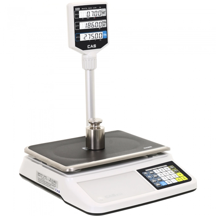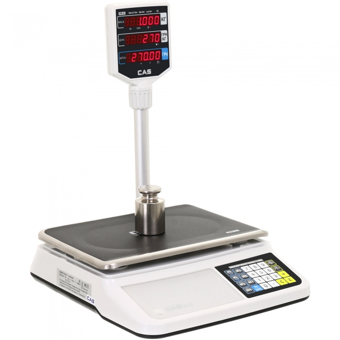 Ваги торгові електронні CAS PR II P від 40 грам до 15 кг точність 2/5 грам зі стійкою без друку етикеток, мають розширений функціонал і список опцій, економічні, високоякісні та надійні за невисоку ціну. Відмінно підходять для зважування товарів в магазині, біля будинку та на ринку. Використовують для підключення до онлайн кас.