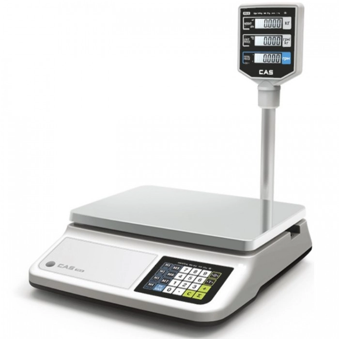 Ваги торгові електронні CAS PR II P від 20 грам до 6 кг точність 1/2 грам зі стійкою без друку етикеток, мають розширений функціонал і список опцій, економічні, високоякісні та надійні за невисоку ціну. Відмінно підходять для зважування товарів в магазині, біля будинку та на ринку. Використовують для підключення до онлайн кас.