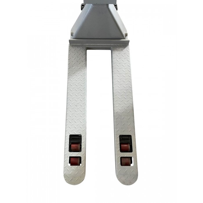 Весы рокла ЗЕВС на 500 кг – это универсальное устройство, позволяющее не только перемещать, но и взвешивать паллеты, поддоны и другие виды грузов, а также, в случае необходимости, вести учет товаров на складе. Имея высокую маневренность, весовая рокла позволяет легко перемещать и взвешивать грузы весом от 4 кг до 500 кг с точностью 200 грамм. От обычных тележек рокла-весы отличается наличием гидравлического домкрата, который с помощью тяг и рычагов поднимает и опускает вилы тележки, а также наличием тензометрических датчиков, встроенных в конструкцию вил и весового индикатора, на котором отображается вес взвешиваемого груза. Рокла с весами ЗЭВС ВПЕ комплектуются роликами с полиуретановым покрытием, которые могут применяться на всех типах поверхностей. Они отличаются высокой износостойкостью и прекрасными антивибрационными свойствами, что делает роклу практически бесшумной. Для весового индикатора предусмотрена защитная рамка, надежно защищающая его от частых ударов о груз. Степень пыле- и влагозащиты позволяет эксплуатировать весы-рокла ЗЕВС ВПЭ как на закрытых складах, так и при работе на открытых площадках. Гидравлическая тележка с весами на 500 кг ЗЕВС ВПЕ – это идеальное решение экономии затрат рабочего времени на транспортировку и взвешивание грузов в процессе отгрузки или приема товара.